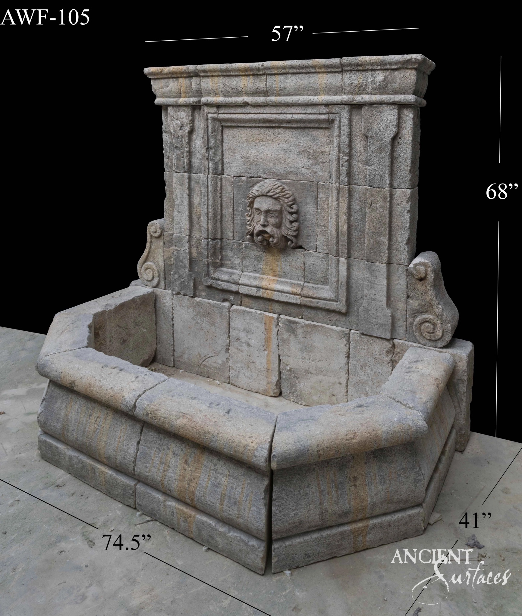 In the realm of architectural elegance, where the harmony of form meets the melody of nature, Ancient Surfaces presents its collection of ancient wall limestone fountains. These timeless pieces, carved from the heart of the earth, stand as monuments to the enduring allure of natural beauty and the mastery of ancient craftsmanship. Each fountain is not just a feature but a captivating centerpiece that brings the serene whispers of water into your space, creating an oasis of tranquility and grace.